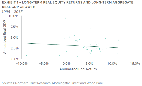 Prior research has shown that there is no correlation between GDP growth and stock market returns (see: The Enigma of Economic Growth and Stock Market Returns).